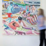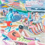 Immersed in summertime, Margery’s beach series invites is a reminder of fleeting moments filled with laughter, leisure, and the excitement of being by the shore. The layered brushwork and rich paint texture in her beachgoer paintings transport viewers, awakening sensations of being by the shore.