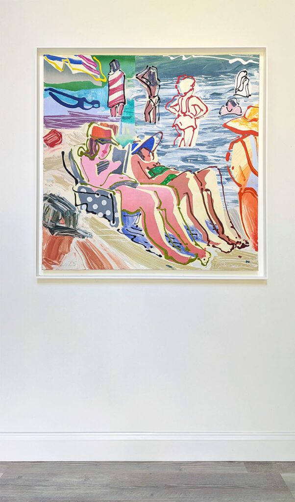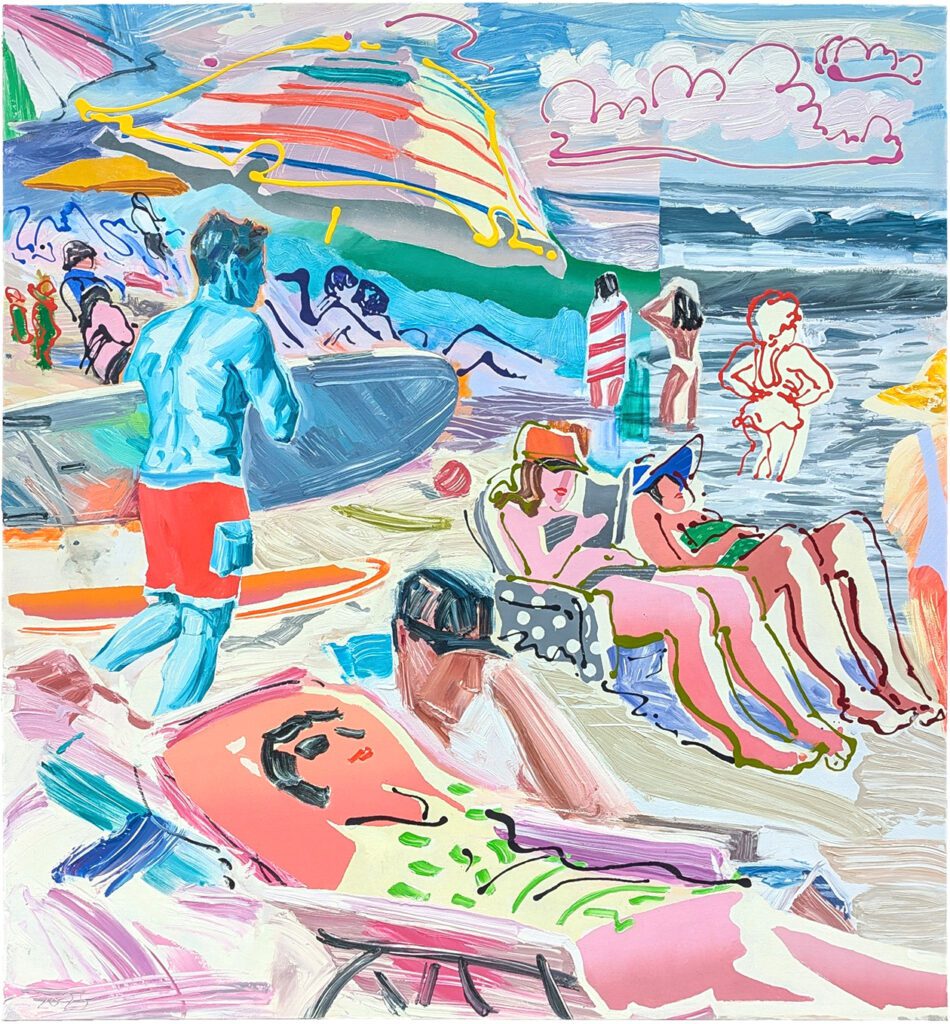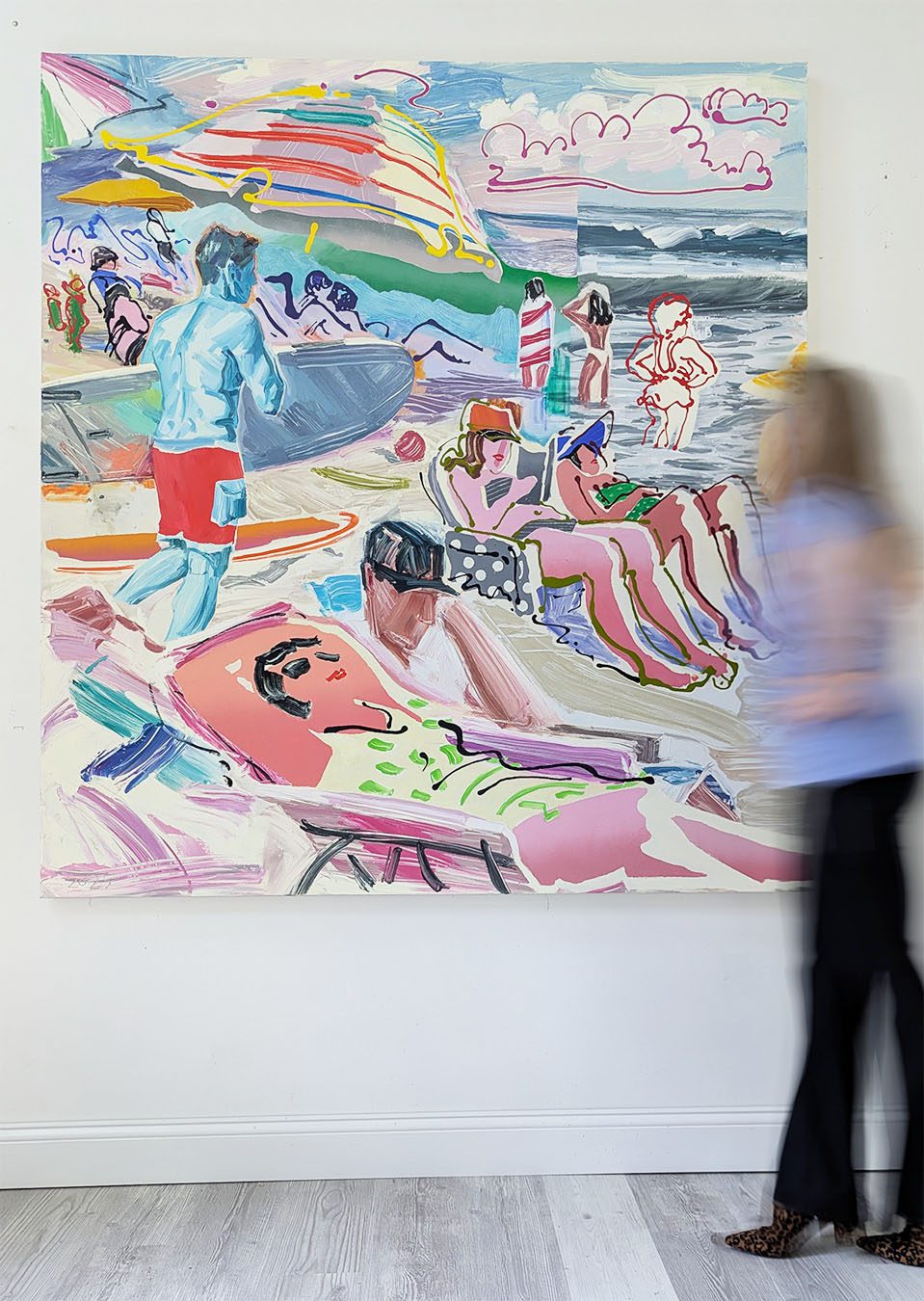 Margery’s tactile approach to paint celebrates the movement and rhythm of beach life capturing archetypical bathing beauties, lifeguard athletes, and thrill-seeking surfers. Visual equivalents evoke sensations of crashing waves, sounds of children playing, and the touch of ocean breezes.
